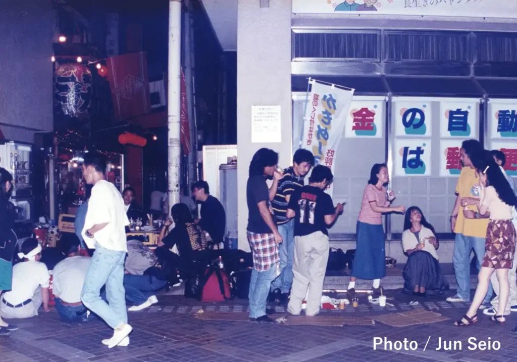 Jリーグが始まったのは1993年。浦和レッズの試合が駒場スタジアムで行われていた90年代、店先の路上にビール瓶ケースをテーブルにして飲んでいるサポーターたちの姿は、浦和の人たちには広く知られた光景でした。