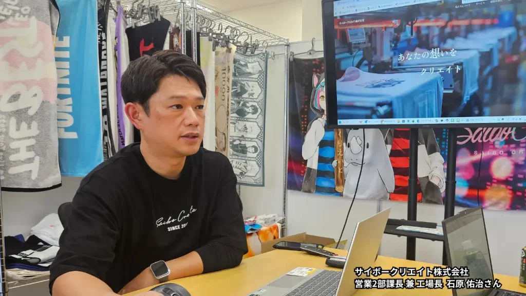 デザイン、生産、出荷、納品。工程管理のリーダーは「時間との勝負。社内連携が肝心です」と語る石原佑治さん(営業2部課長兼工場長)です。