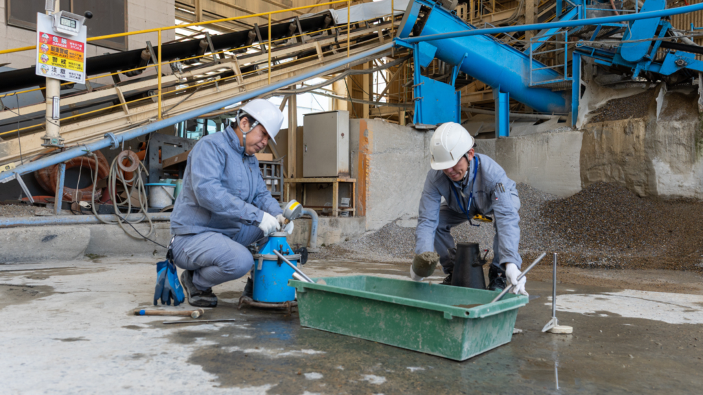 「JIS規格に沿ってオーダー通りに配合するのですが、材料は自然由来のものがあるし砂利も形状がさまざま。季節や気候なども加味して繊細な調整を施して指定通りの製品となります。まるで料理のようですよ」