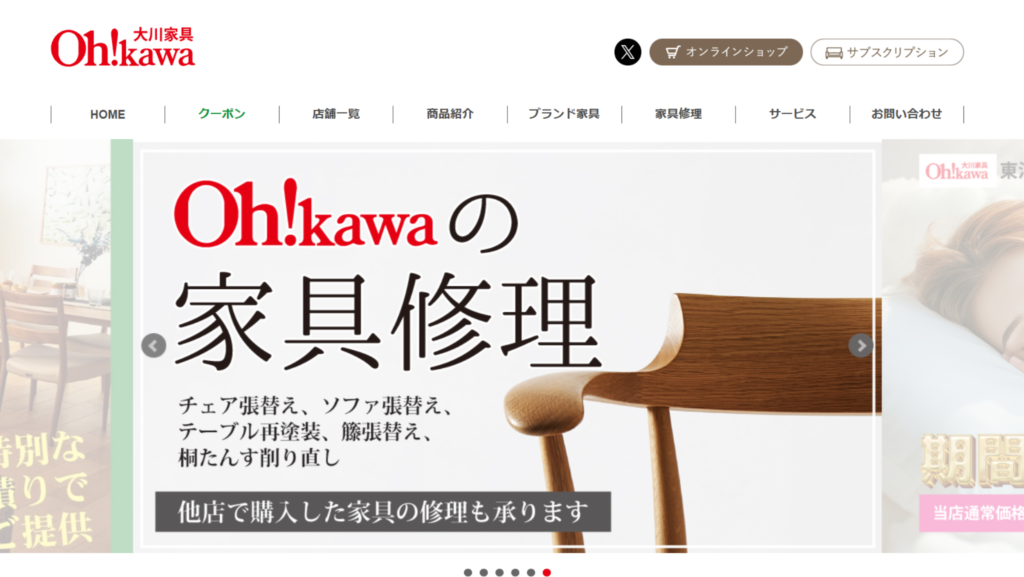 家具は末永くお使いいただくものですから、アフターサービスが大切だと考えているからです。実店舗がある安心感はもちろん、特に、ご購入いただいた家具をお届けした際に、古い家具を引き取らせて頂く「不要家具引取」や「家具修理」は、多くのお客様にご利用いただいている人気のサービスです