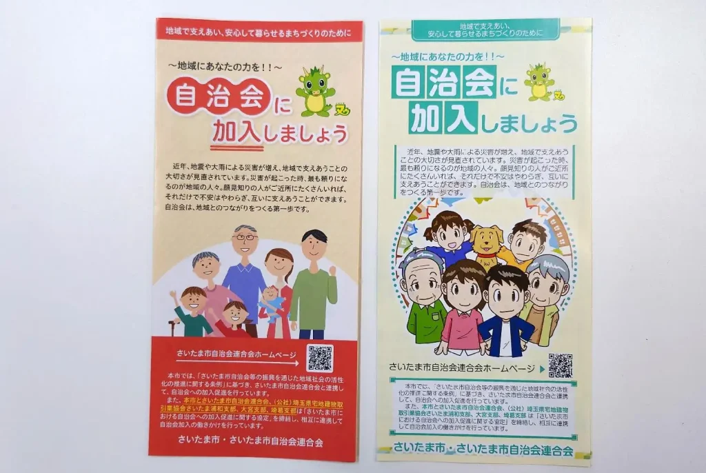 自治会の加入促進の重要アイテムは、転入者が各区役所で手続きする際に受け取る資料の中に入った加入案内のリーフレットです。