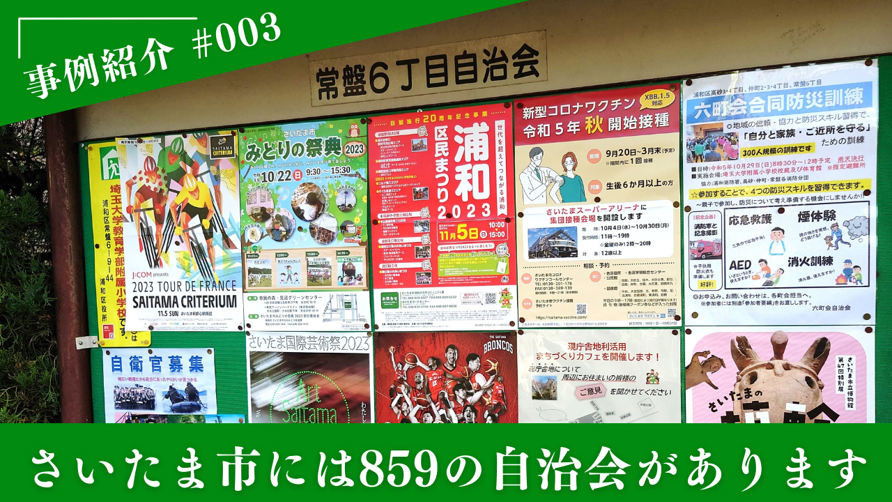 回覧板やゴミ置き場の管理、お祭りなど日常生活で馴染みのある人も多い「自治会」。さいたま市には859の自治会があります。「町内会」と呼ぶ人もいますね。