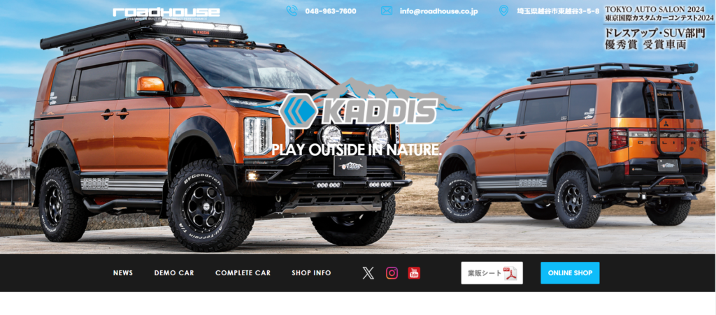カスタムパーツ取り付けや、カスタマイズを施した三菱車の新車コンプリートカー販売などを行っている「ロードハウス」(越谷市・島根亨代表)。全国に向けて販売展開を行なっているオリジナルパーツブランド「KADDIS(カディス)」の存在によって、全国にファンを増やし続けています。